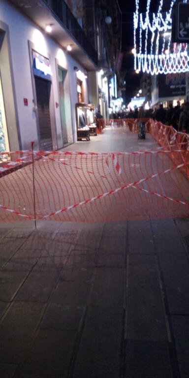 È stata chiuso un tratto di strada e recintato in Via Toledo in prossimità del negozio appartenente alla catena Desigual a causa di una caduta di calcinacci. Lo stesso negozio è chiuso.