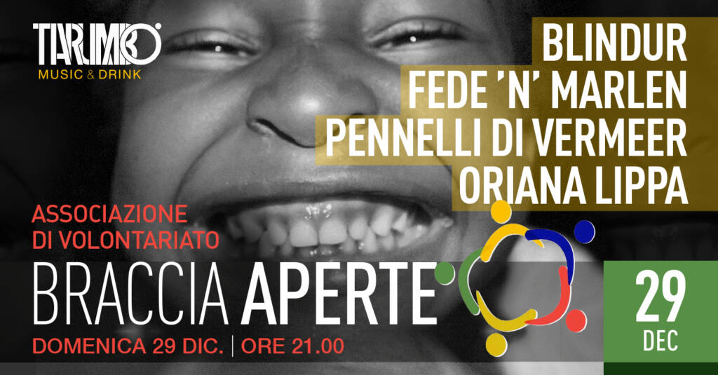 Dalle ore 21.00 il secondo appuntamento del Winter Tour di Braccia Aperte grazie al supporto artistico e musicale di Blindur, Pennelli di Vermeer e Oriana Lippa.