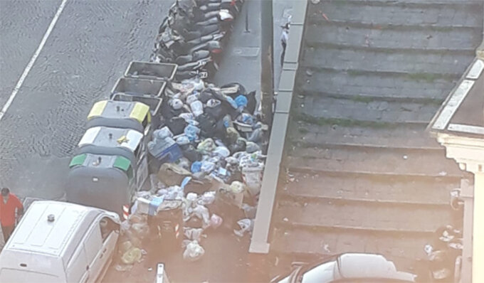 Crisi rifiuti a Napoli, svuotati alcuni cassonetti ma i cumuli adiacenti non vengono rimossi