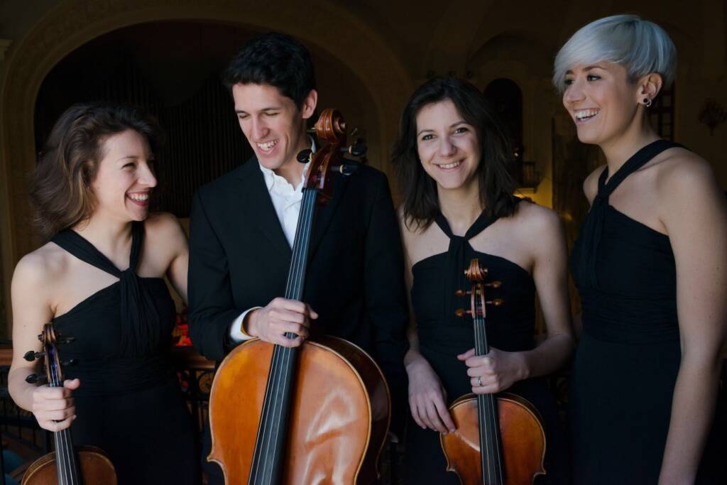 Il Quartetto Echos (Andrea Maffolini e Ida Di Vita violini, Giorgia Lenzo viola – Martino Maina violoncello) si è costituito nel 2013 all’interno del Conservatorio Giuseppe Verdi di Torino sotto gli auspici di Antonio Valentino e Claudia Ravetto. Nel 2017 ottiene il Premio Piero Farulli della Critica Musicale italiana nell’ambito del Premio Franco Abbiati e nel 2019 il Primo Premio al concorso di Musica da Camera Gasparo da Salò di Brescia e il Secondo Premio al Concorso Nazionale per Quartetto d’archi Sergio Dragoni di Milano. Ha partecipato a vari festival – North Norfolk Music Festival, Quatuors à Cordes en Pays de Fayence e Quatuors à Bordeaux – ed ha suonato per importanti stagioni concertistiche italiane tra le quali l’Unione Musicale di Torino, la Società del Quartetto di Milano, la Filarmonica Laudamo di Messina, il festival MiTo Settembre Musica e CaMu di Arezzo. Partecipa al Progetto Le Dimore del Quartetto, iniziativa a sostegno dei giovani quartetti e che permette loro di esibirsi in Italia ed all’estero, ed ha suonato musiche di Beethoven al Salone del Libro di Torino in occasione della presentazione del saggio “I quartetti per archi di Beethoven” di Quirino Principe.