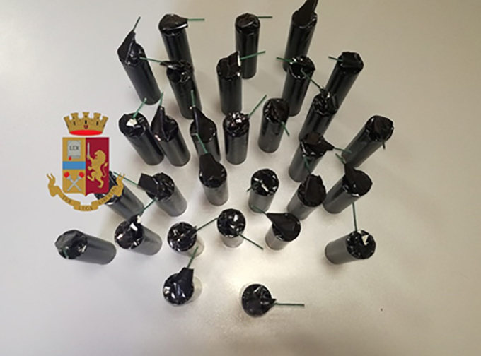 S.M., 27enne napoletano, è stato denunciato per detenzione e trasporto abusivo di materiale esplodente.