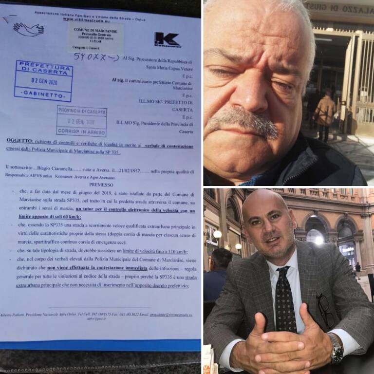 Questa mattina Biagio Ciaramella, responsabile Konsumer e Aifvs Aversa e Agro Aversano, si è recato presso gli uffici della Procura della Repubblica di Santa Maria Capua Vetere, per protocollare la richiesta di “controllo e verifica di legalità in merito ai verbali di contestazione emessi dalla Polizia municipale di Marcianise sulla strada Provinciale 335.” La stessa documentazione è stata consegnata dal responsabile delle due associazioni, anche alla Prefettura, alla Provincia e al comune di Marcianise. Ciaramella subito dopo la consegna ha dichiarato: “Sia con l’Associazione Italiana Familiari e Vittime della strada che con la Konsumer, chiediamo alla Procura se sul tratto di strada provinciale 335 è legale oppure no il limite attualmente presente di 60km/h. Un limite che risulta essere pericoloso per la circolazione, visto che su quel tipo di strada, extraurbana principale, dovrebbe sussistere un limite di velocità che va da 90km/h fino a 110km/h.” “Chiediamo sia fatta chiarezza – continua Ciaramella – anche sull’agibilità di quel tratto dell’Asse Mediano. Noi non vogliamo accusare nessuno, ma pretendiamo informazioni certe su una strada ad alta percorrenza, che mette in pericolo la vita degli automobilisti e che sta prosciugando le tasche di migliaia di persone. Chiediamo inoltre, che venga chiarito come vengono spesi i soldi dell’articolo 208 previsti per la sicurezza stradale. ” Il responsabile delle associazioni ha così concluso: “Per il momento è stata prevista la sospensione del tutor, ma è tempo di risposte! se questo apparecchio rappresenta solo un bancomat per il comune di Marcianise e non è a norma, e se la strada non è agibile, bisogna prendere provvedimenti immediati, perche la vita dei cittadini non può essere utilizzata per giocare alla roulette e per accumulare incassi facili. Vincenzo Ferrante, vicepresidente nazionale Konsumer Italia, dichiara: “Ribadiamo che non siamo contro i Tutor, che sono strumenti utili per la sicurezza stradale, ma siamo per il rispetto della legalità da parte di tutti, istituzioni innanzi tutti”.